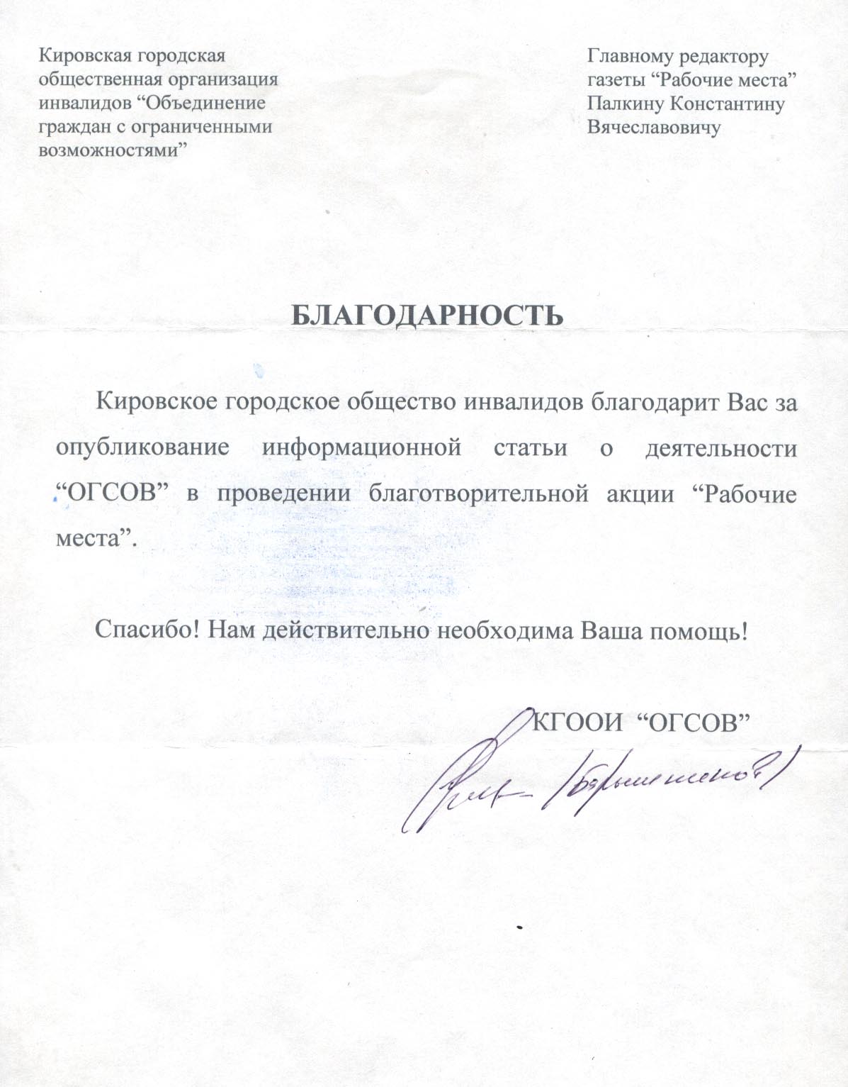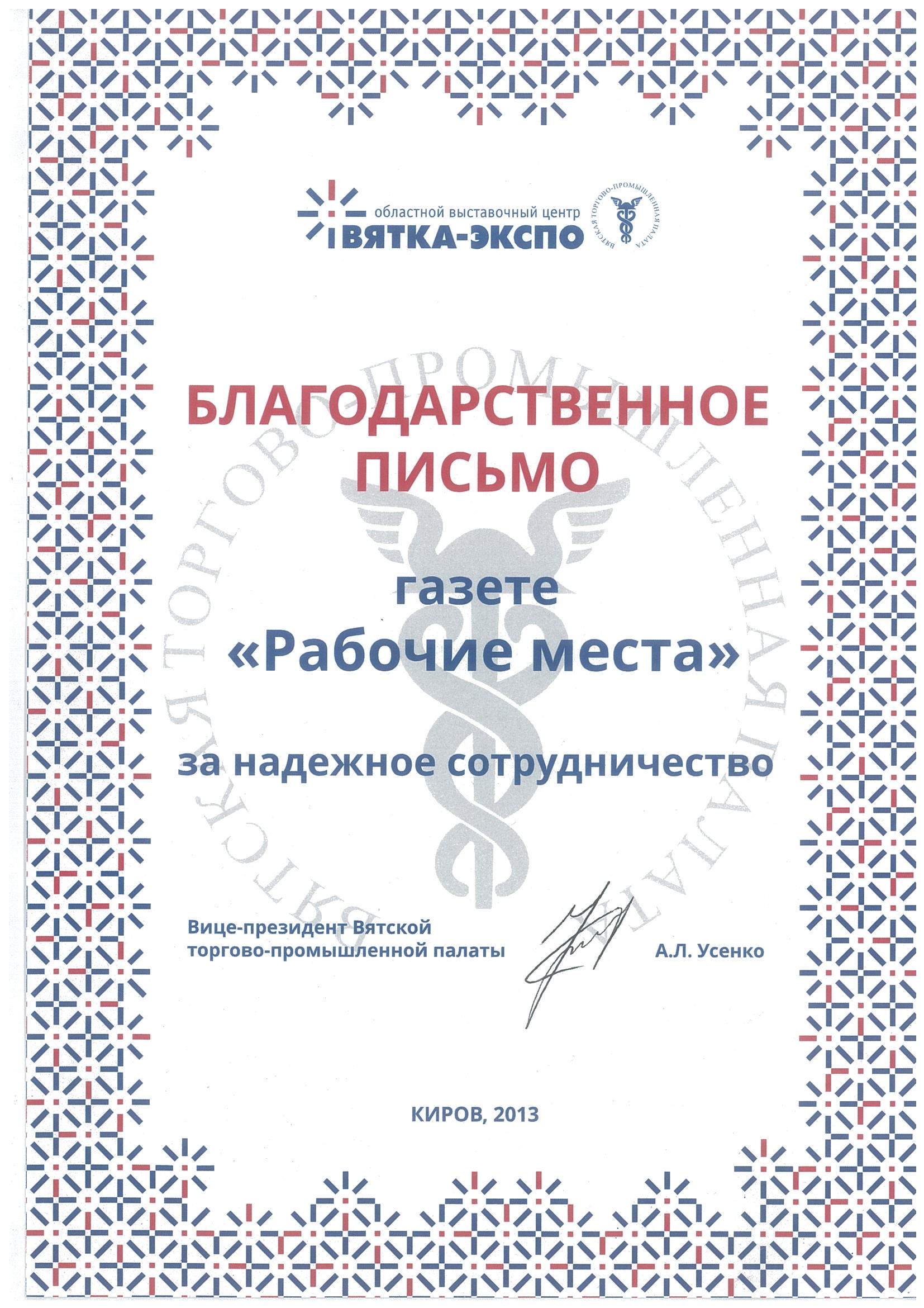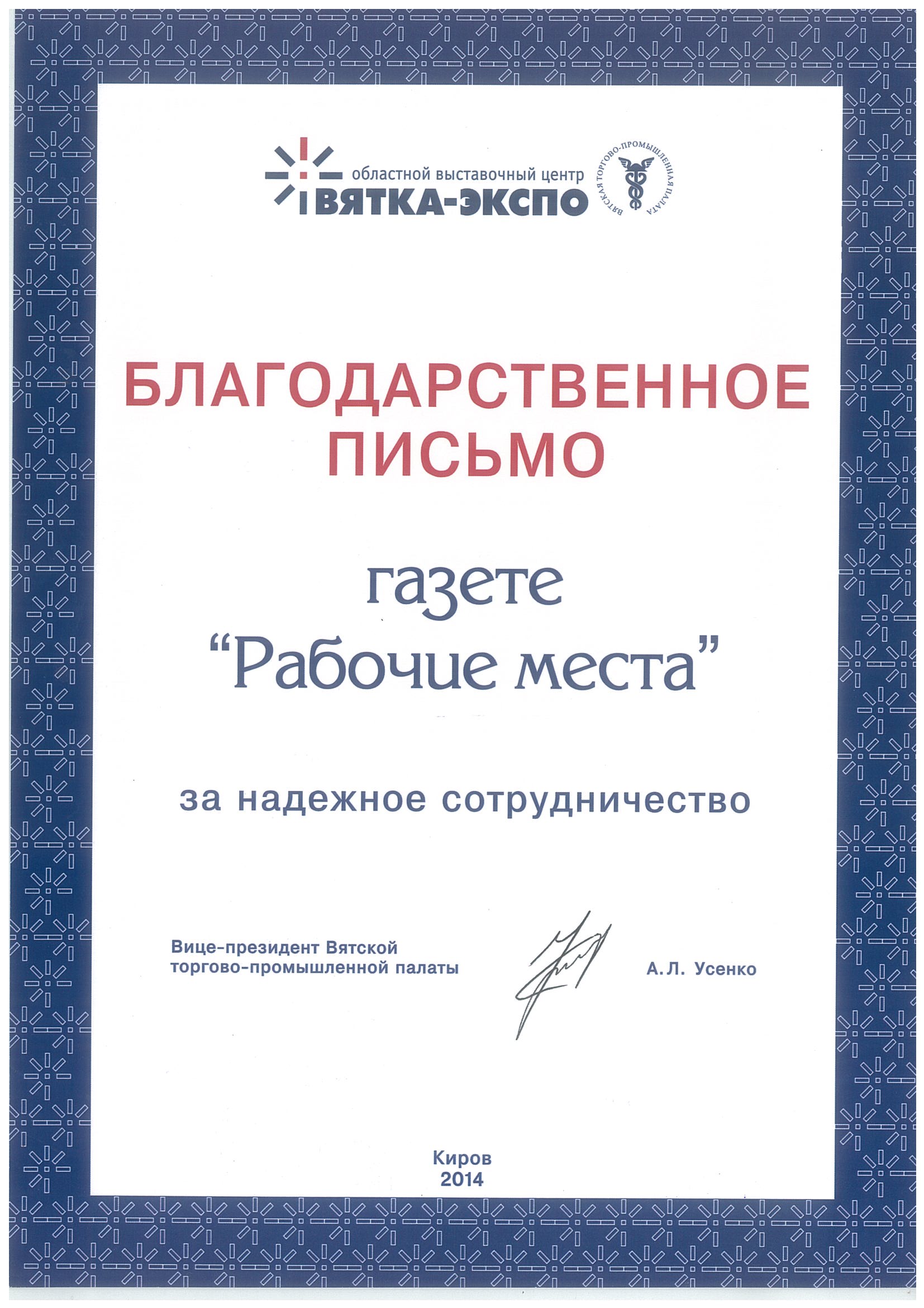 Все в г. Киров знают, что если ты в поиске работы, надежный помощник - газета «Рабочие места». И для нас, как работодателя – это неоспоримый плюс! Благодарны газете «Рабочие места» и ее сотрудникам – за своевременность, оперативность, эффективность, индивидуальный подход! Успехов!
